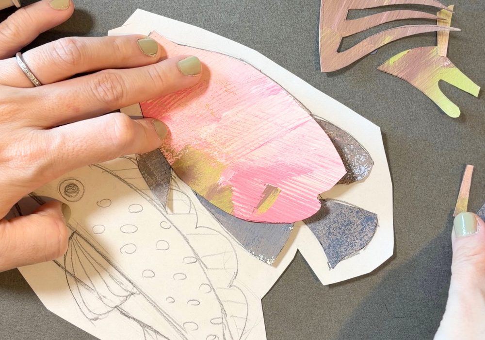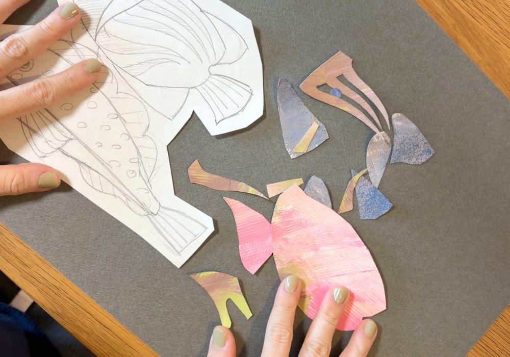 何のモチーフを作るかにもよりますが、胴体が一番大きくて、そこに背びれ・尾びれなど、小さなパーツを付けていきます。なので、小さなパーツはのり代を作っておきます。