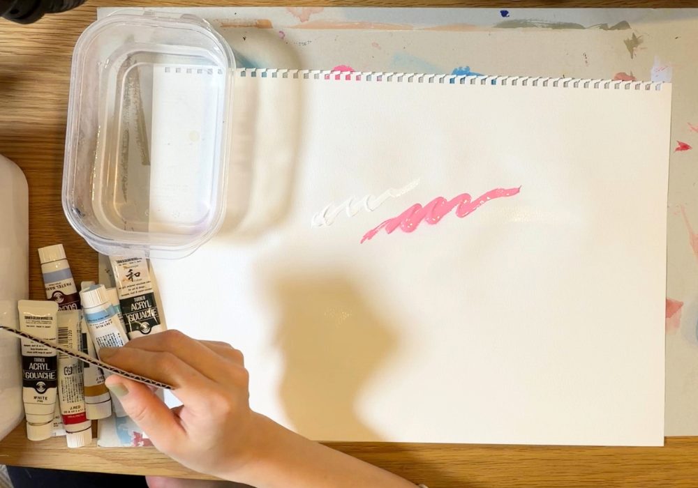 - 絵の具…アクリルガッシュ(不透明)を使用。普通の水彩絵の具でもいいけど、アクリル絵の具のほうが発色は全然良いです。今回は、ターナーのアクリルガッシュを使っています。