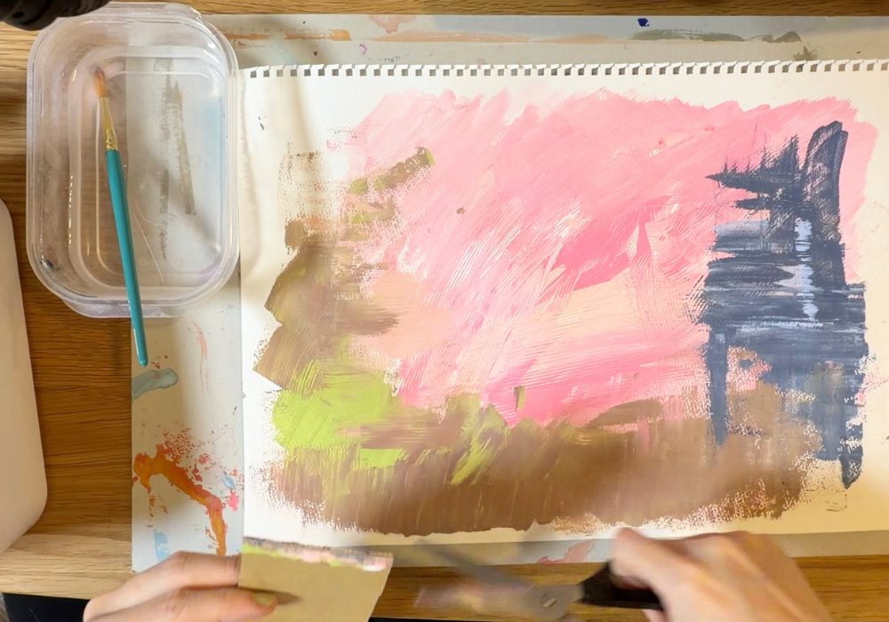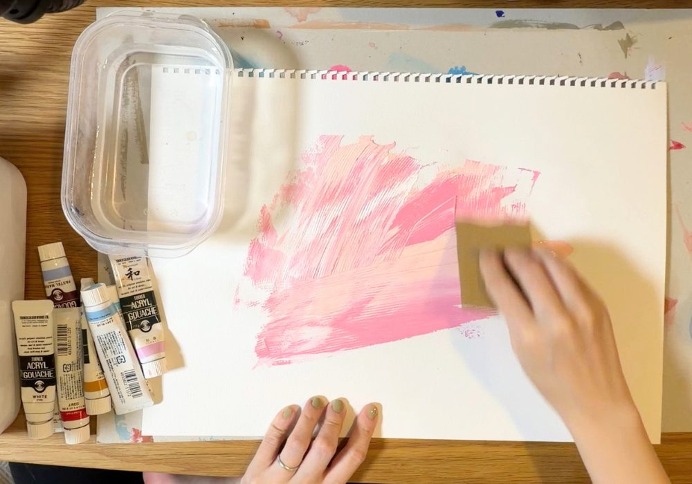普通の絵筆以外に、段ボール片やスポンジなど、家にあるものを使ってみてください!