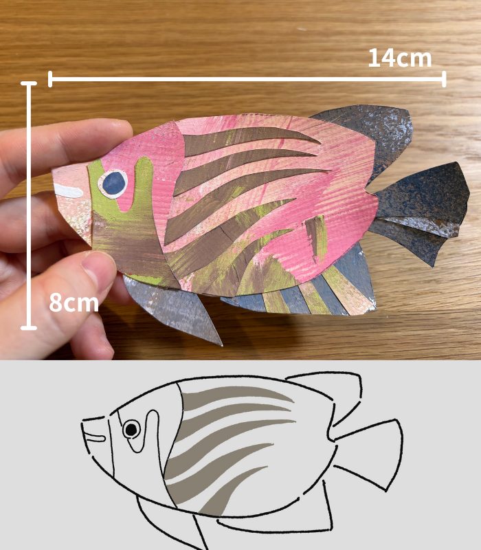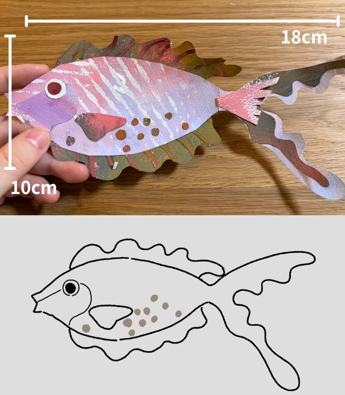 同じ技法を使って、違うデザインのお魚も作ってみたよ!無料PDFもダウンロード配布中です。もしよければ使ってください!